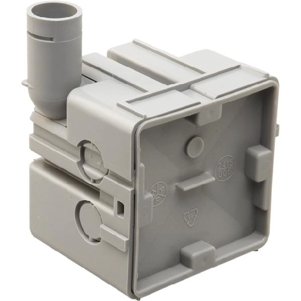 Vierkante inbouwdoos voor schoonmetselwerk en beton met 16 mm buisinvoer en herplaatsbare klemdeksel. Afmetingen (l x b x d): 71 x 71 x 60 mm. Inwendige diepte: 58 mm, ideaal voor JUNG wandcontactdozen met USB-aansluiting.