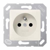 Stopcontact met penaarde (voor België) en Safety+ (kinderbeveiliging). Draagring, bevestigingsklauwen en klauwschroeven zijn aangesloten op de aardverbinding. Slagvast, hoogglanzend thermoplast. Exclusief afdekraam. Afmeting: 50 x 50 mm, kleur: crème.