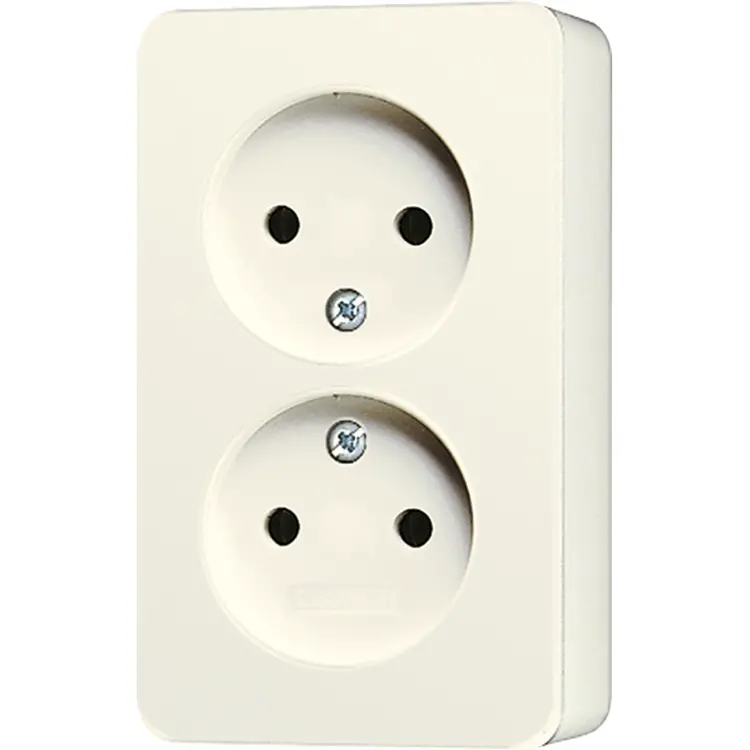 Opbouw 2-voudig stopcontact zonder randaarde. Bedrading aansluiten met insteekklemmen. Exclusief bodemplaat. Afmetingen: 61 x 102 x 47 mm. Serie: AP 600, kleur: crème.