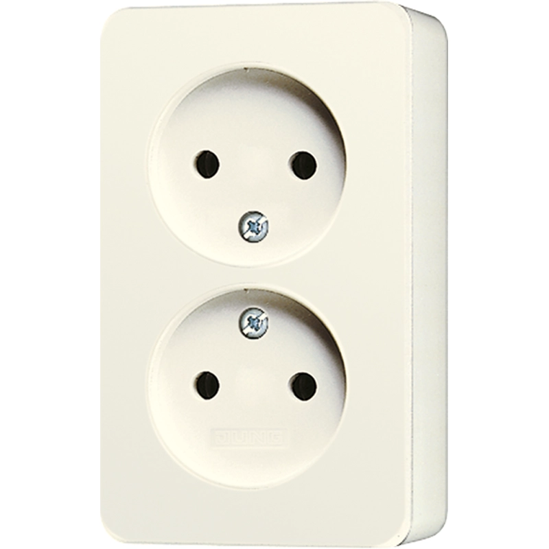 JUNG opbouw wandcontactdoos 2-voudig zonder randaarde Safety+ AP600 creme (6010 KI A)