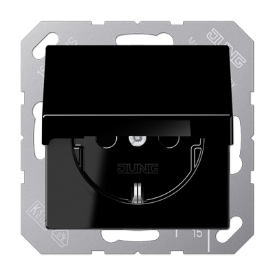 JUNG wandcontactdoos randaarde klapdeksel A-range zwart glans (A 1520 NBFKL SW)