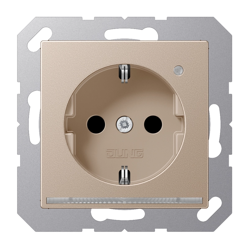 JUNG wandcontactdoos randaarde Safety+ met LED-oriëntatieverlichting en lichtsensor A-range champagne (A 1520-O CH LNW)