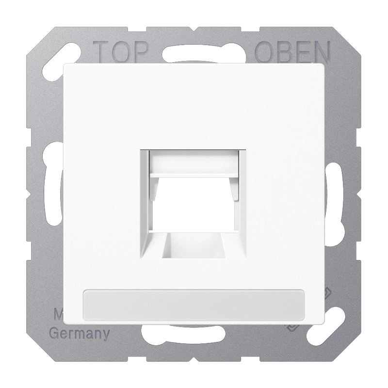 JUNG afdekking met draagring en tekstvenster 1-voudig modulair jack EMT A-range alpine wit (A 1569-15 NA WE WW)