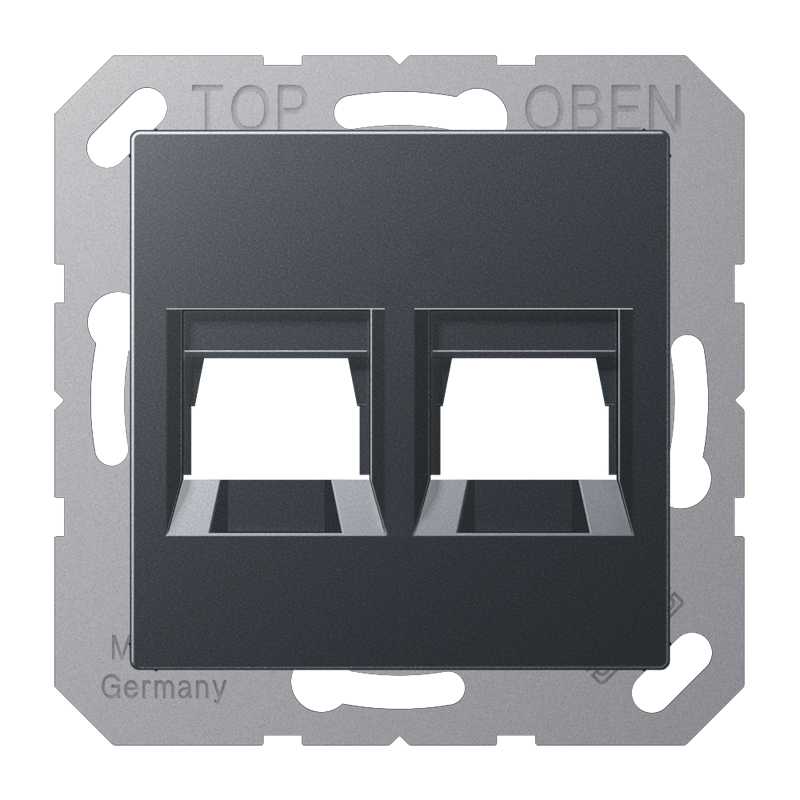 JUNG afdekking klikbevestiging met draagring 2-voudig modulair jack JUNG A-range antraciet mat (A 1569-2 WE ANM)