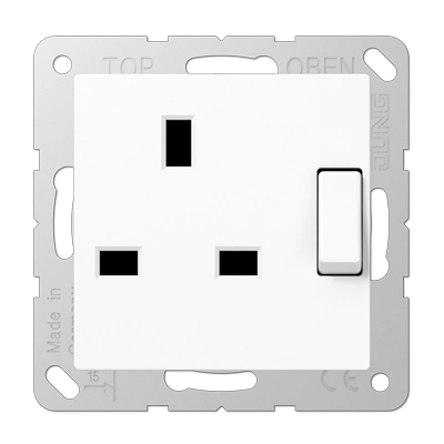 JUNG wandcontactdoos British Standard Safety+ afschakelbaar met schroefklemmen A-range alpine wit (A 3171 WW)