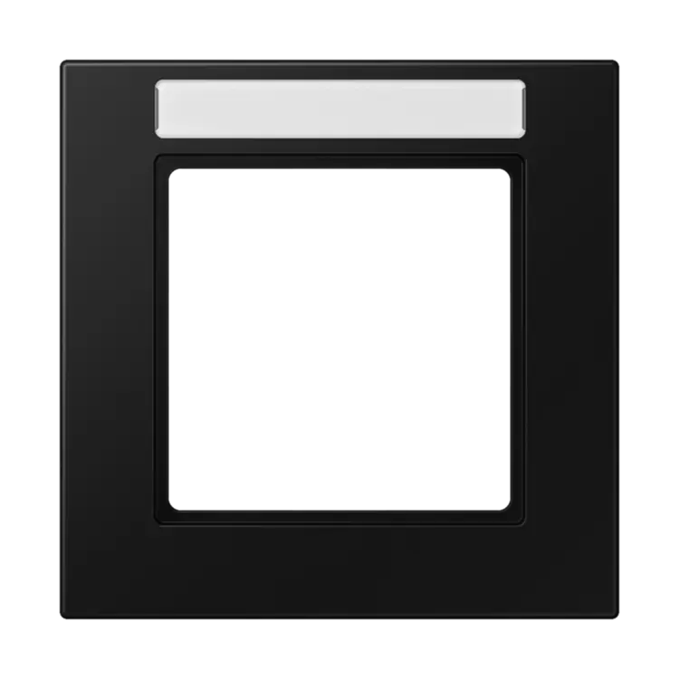 Enkelvoudig afdekraam met tekstvenster, voor horizontale en verticale montage. Afmetingen: 85 x 85 x 10 mm. Gemaakt van slagvast, mat gelakt thermoplast. Serie: A 550, kleur: grafietzwart mat.