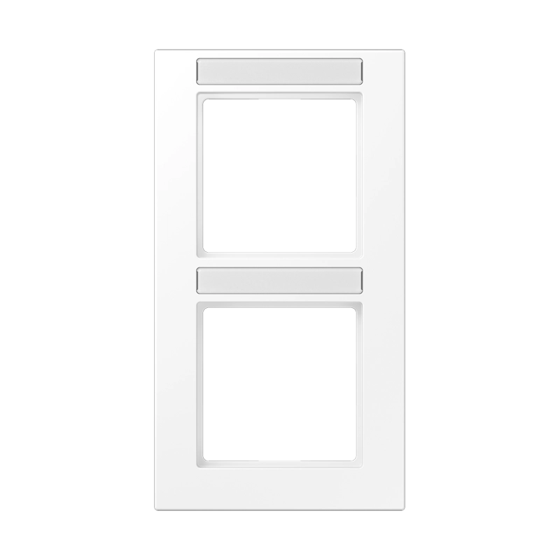 Tweevoudig afdekraam met tekstvenster, voor verticale montage. Afmetingen: 85 x 156 x 10 mm. Gemaakt van slagvast, mat gelakt thermoplast. Serie: A 550, kleur: sneeuwwit mat. Meer informatie »