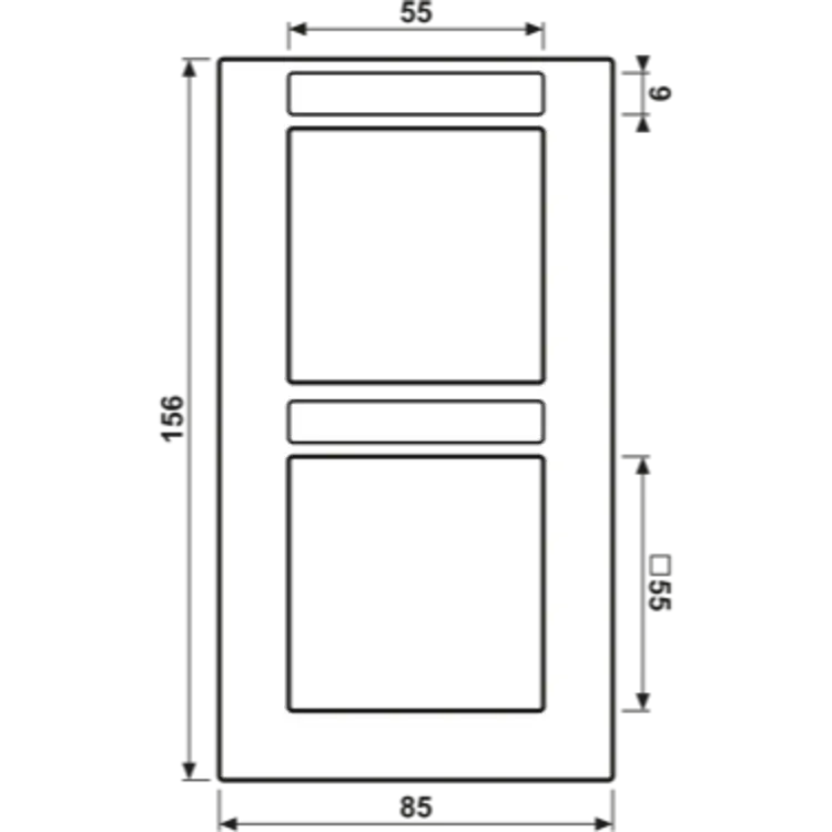 Tweevoudig afdekraam met tekstvenster, voor verticale montage. Afmetingen: 85 x 156 x 10 mm. Gemaakt van slagvast, mat gelakt thermoplast. Serie: A 550, kleur: sneeuwwit mat.