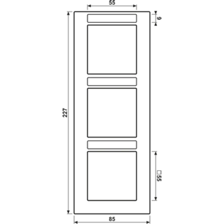 Drievoudig afdekraam met tekstvenster, voor verticale montage. Afmetingen: 85 x 227 x 10 mm. Gemaakt van slagvast, mat gelakt thermoplast. Serie: A 550, kleur: antraciet mat.
