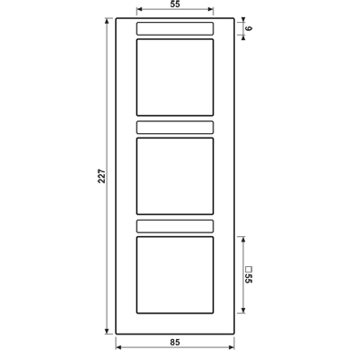 Drievoudig afdekraam met tekstvenster, voor verticale montage. Afmetingen: 85 x 227 x 10 mm. Gemaakt van slagvast, mat gelakt thermoplast. Serie: A 550, kleur: antraciet mat. Meer informatie »