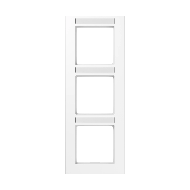 Drievoudig afdekraam met tekstvenster, voor verticale montage. Afmetingen: 85 x 227 x 10 mm. Gemaakt van slagvast, hoogglanzend thermoplast. Serie: A 550, kleur: alpine wit.