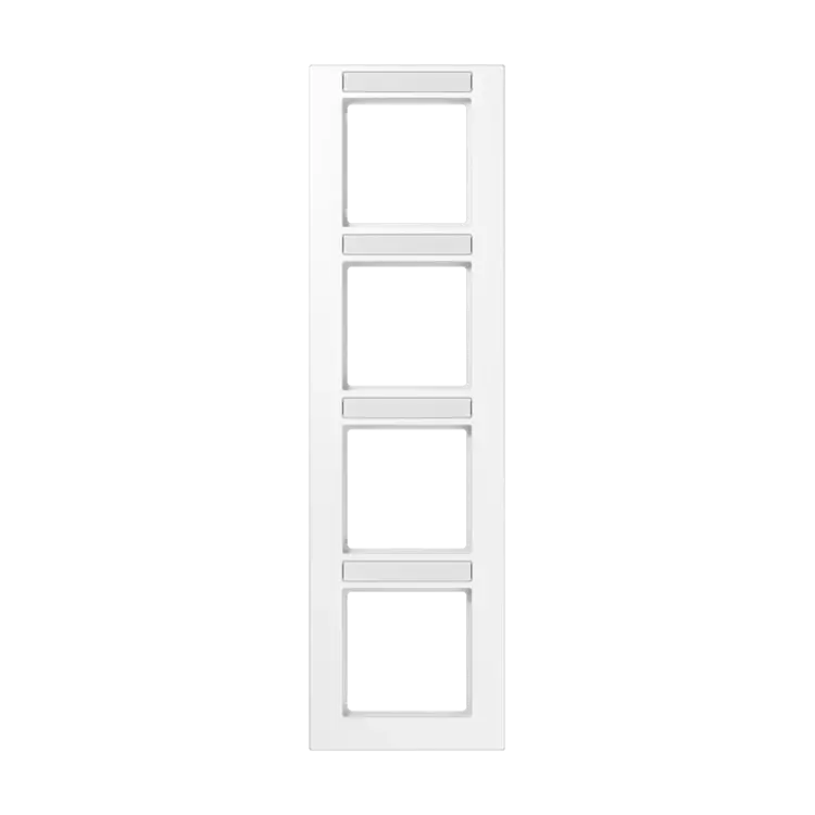 Viervoudig afdekraam met tekstvenster, voor verticale montage. Afmetingen: 85 x 298 x 10 mm. Gemaakt van slagvast, hoogglanzend thermoplast. Serie: A 550, kleur: alpine wit.