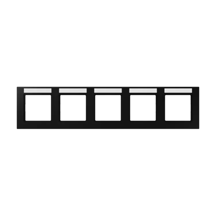 Vijfvoudig afdekraam met tekstvenster, voor horizontale montage. Afmetingen: 85 x 369 x 10 mm. Gemaakt van slagvast, mat gelakt thermoplast. Serie: A 550, kleur: grafietzwart mat.