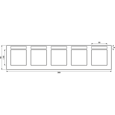 Vijfvoudig afdekraam met tekstvenster, voor horizontale montage. Afmetingen: 85 x 369 x 10 mm. Gemaakt van slagvast, mat gelakt thermoplast. Serie: A 550, kleur: grafietzwart mat. Meer informatie »