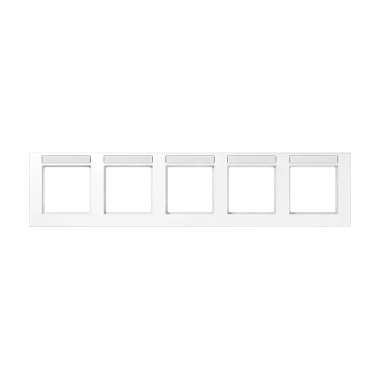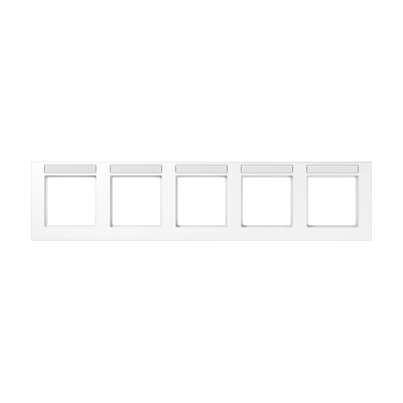 Vijfvoudig afdekraam met tekstvenster, voor horizontale montage. Afmetingen: 85 x 369 x 10 mm. Gemaakt van slagvast, hoogglanzend thermoplast. Serie: A 550, kleur: alpine wit.