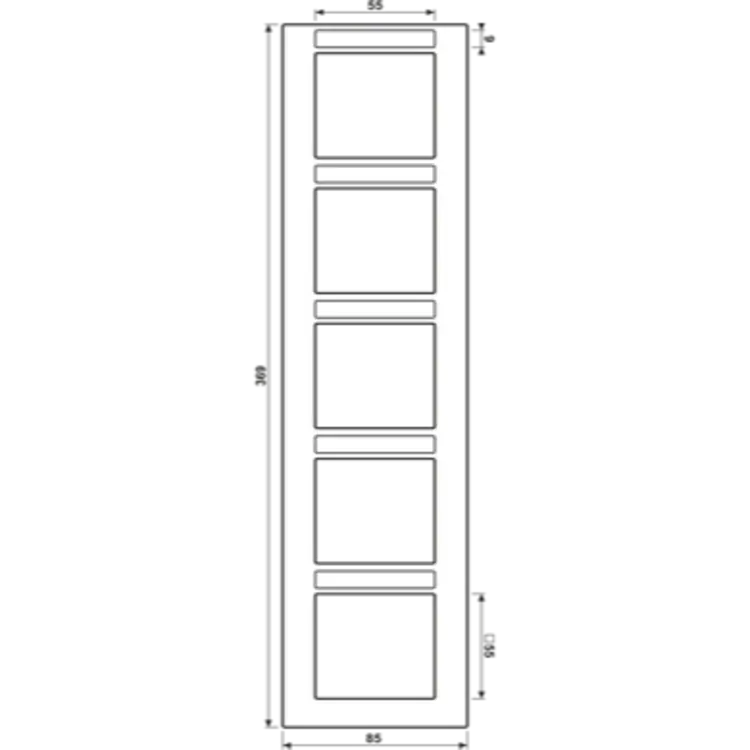 Vijfvoudig afdekraam met tekstvenster, voor verticale montage. Afmetingen: 85 x 369 x 10 mm. Gemaakt van slagvast, mat gelakt thermoplast. Serie: A 550, kleur: antraciet mat. Meer informatie »