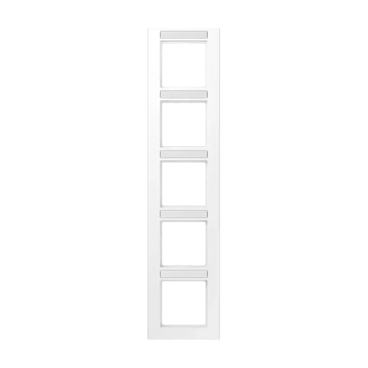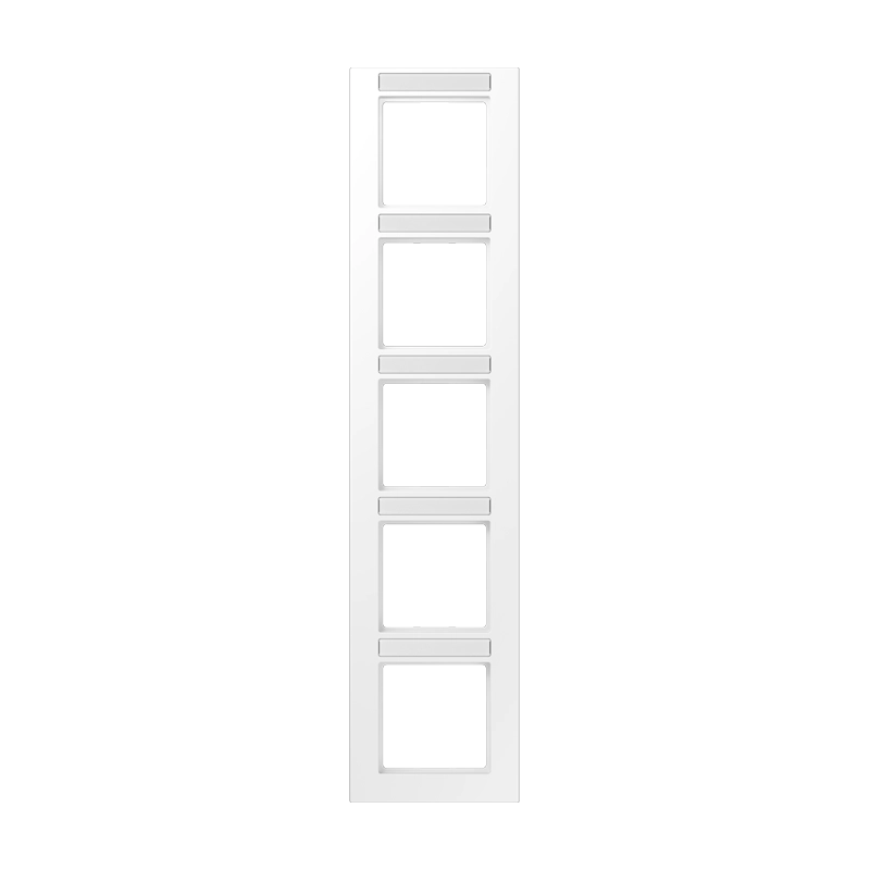 Vijfvoudig afdekraam met tekstvenster, voor verticale montage. Afmetingen: 85 x 369 x 10 mm. Gemaakt van slagvast, mat gelakt thermoplast. Serie: A 550, kleur: sneeuwwit mat.