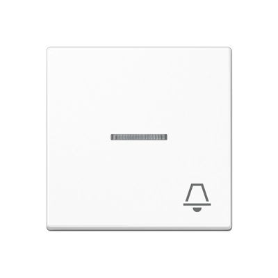 Schakelwip (knop) met belsymbool en controlevenster, geschikt voor controleschakelaars, en schakelaars/pulsdrukkers met verlichting. Gemaakt van Duroplast: zeer krasvast en glanzend. Exclusief binnenwerk en afdekraam. Serie: A-range, kleur: alpine wit.