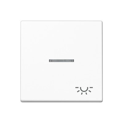 Schakelwip (knop) met lichtsymbool en controlevenster, geschikt voor controleschakelaars, en schakelaars/pulsdrukkers met verlichting. Gemaakt van Duroplast: zeer krasvast en glanzend. Exclusief binnenwerk en afdekraam. Serie: A-range, kleur: alpine wit.