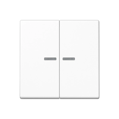 Tweevoudige schakelwip (knop) met controlevenster, geschikt voor (controle)serieschakelaars, wissel-wisselschakelaars en serie-pulsdrukkers met verlichting. Gemaakt van Duroplast: zeer krasvast en glanzend. Exclusief binnenwerk en afdekraam. Serie: A-range, kleur: alpine wit.