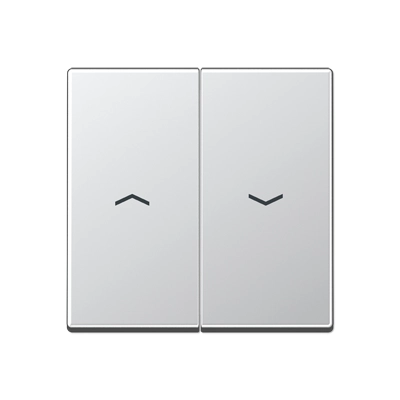 Tweevoudige schakelwip, met pijlsymbolen voor jaloezieschakelaar 509 VU of jaloezie-impulsdrukker 539 VU. Gemaakt van gelakt Duroplast: zeer krasvast. Inclusief klemstuk, exclusief binnenwerk en afdekraam. Serie: A-range, kleur: aluminium.