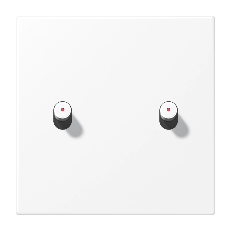 Dubbele schakelwip met lens, voor tuimelschakelaar met oriëntatie- of controleverlichting 2-voudig (K 505 EU 5 of K 505 KO EU 5). Met 2 tuimelhevels cilinder, sneeuwwit mat. Materiaal: aluminium gelakt.
