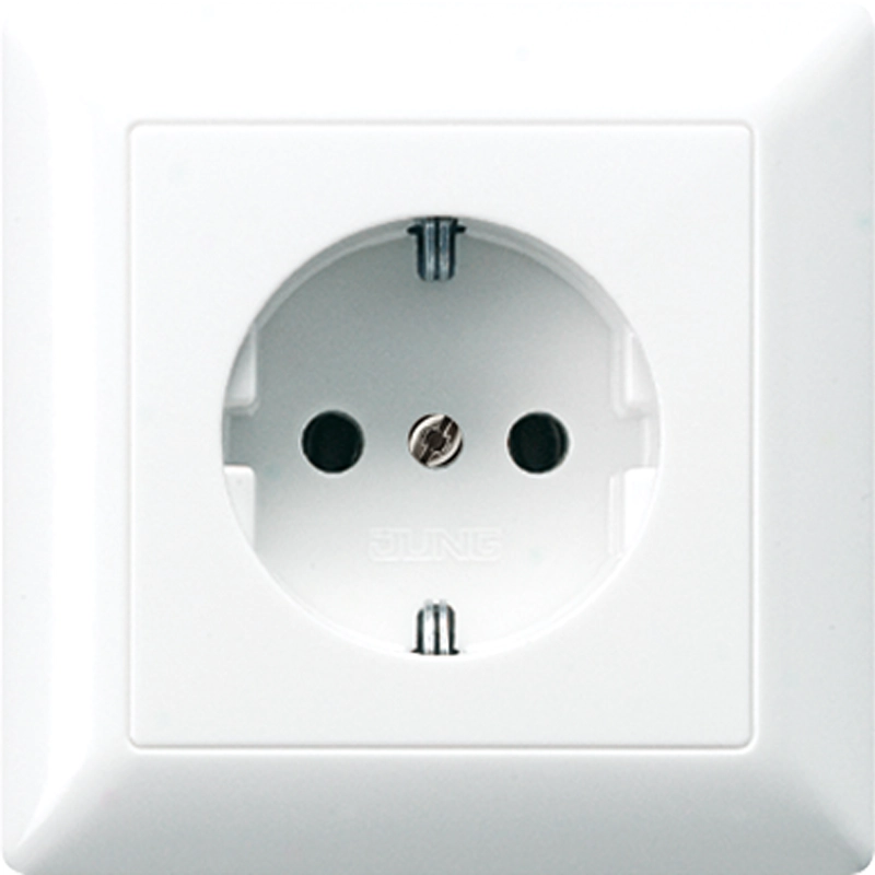 JUNG wandcontactdoos randaarde Safety+ met schroefklemmen en afdekraam AS500 alpine wit (AS 1521 NKI WW)