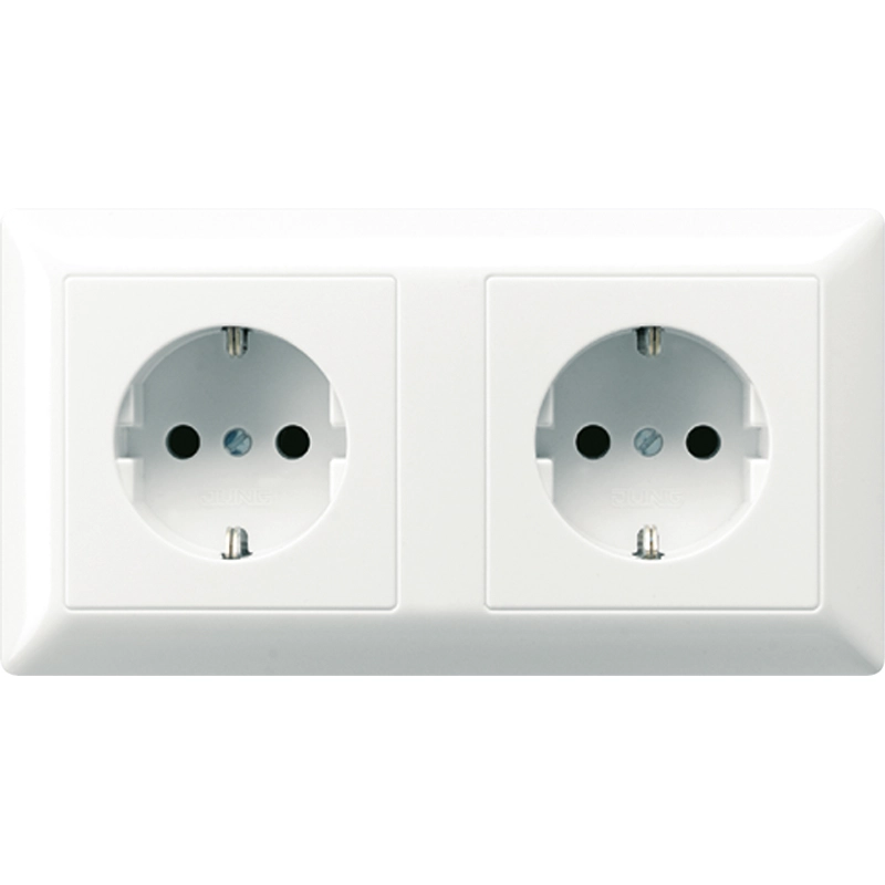 JUNG wandcontactdoos 2-voudig randaarde voorbedraad voor wandgoot AS500 alpine wit (AS 1522 WW)