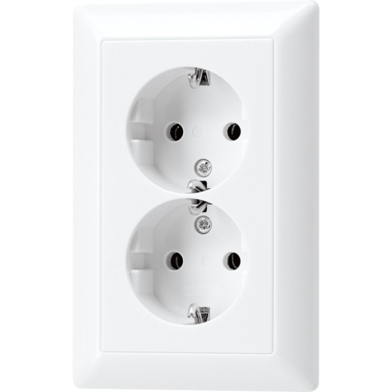 JUNG wandcontactdoos 2-voudig randaarde Safety+ voor ovale 1,5 inbouwdoos AS500 alpine wit (AS 5015 KI WW)