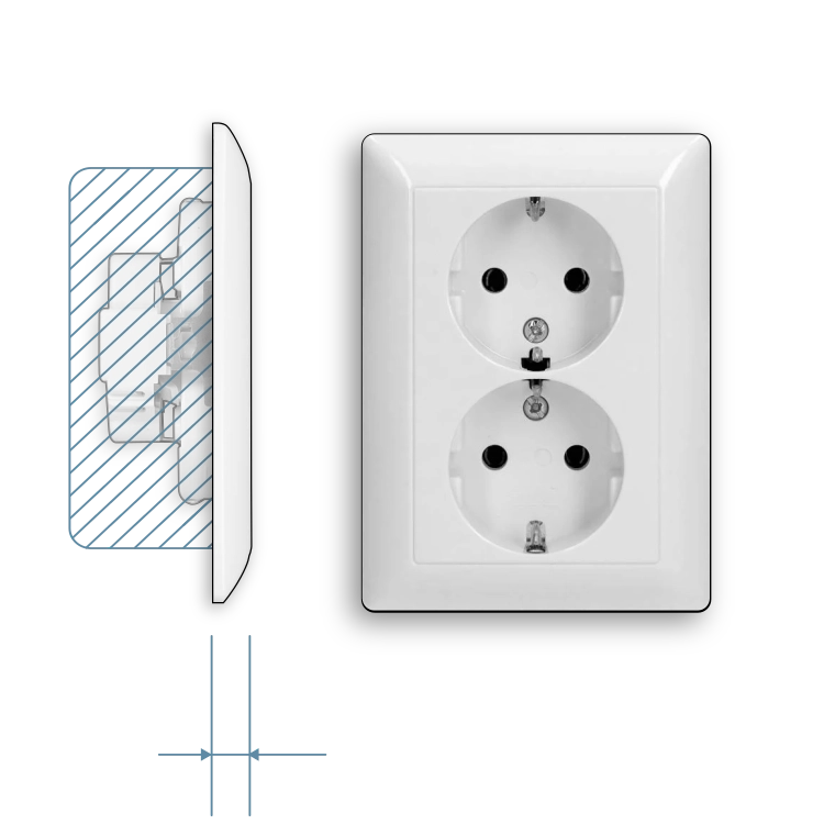 Stopcontact 2-voudig 'vlak' met beschermingscontact (randaarde) en geïntegreerd afdekraam. Geschikt voor een anderhalve (ovale) inbouwdoos. Bedrading aansluiten met insteekklemmen (massieve aders tot 2,5 mm²). Gemaakt van Duroplast: zeer krasvast en glanzend. Serie: AS 500, kleur: alpine wit.