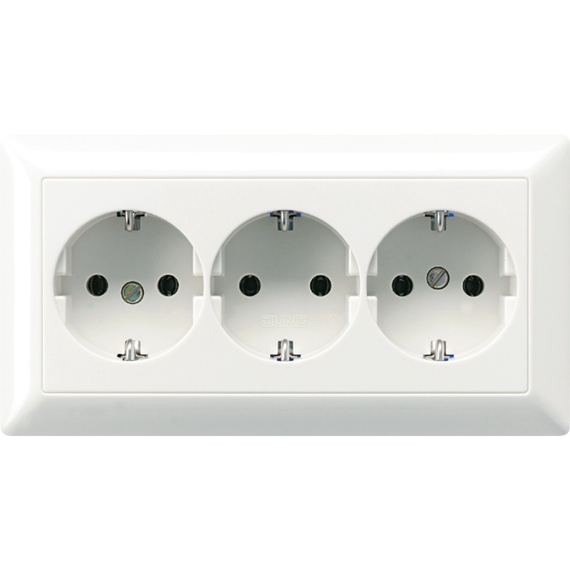 JUNG wandcontactdoos randaarde 3-voudig voorbedraad voor wandgoot AS500 alpine wit (AS 523 BF WW)