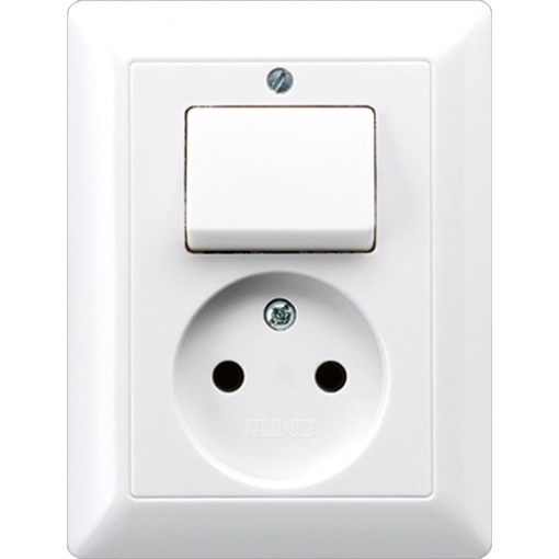 JUNG combinatie schakelaar/wandcontactdoos zonder randaarde AS500 alpine wit (AS 5546 EU WW)