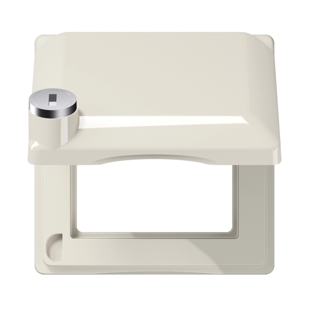 Klapdeksel met slot en geïntegreerd afdekraam. Geschikt voor contactdozen, schakelaars en impulsdrukkers met afdekkingen uit de AS/A-range. Gemaakt van slagvast, hoogglanzend thermoplast. Exclusief binnenwerk. Kleur: crème.
