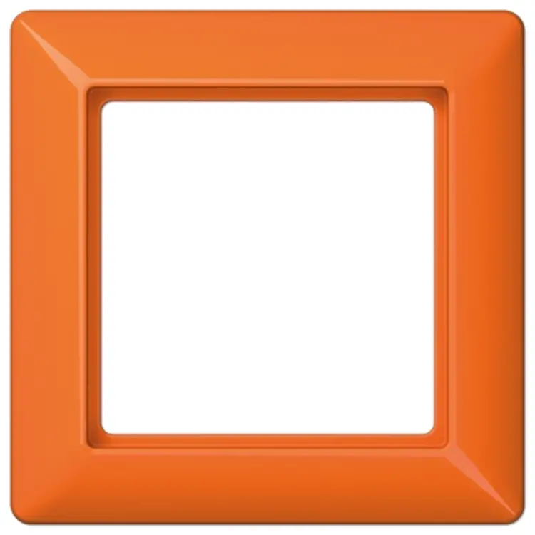 Enkelvoudig afdekraam, voor horizontale en verticale montage. Afmetingen: 80,5 x 80,5 x 10 mm. Gemaakt van slagvast, hoogglanzend thermoplast. Serie: AS 500, kleur: oranje.
