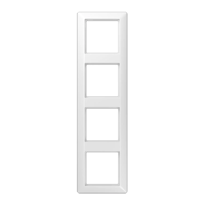 Viervoudig afdekraam, voor horizontale en verticale montage. Afmetingen (buitenmaat b x h x d): 80,5 x 293,5 x 10 mm. Gemaakt van slagvast, hoogglanzend thermoplast. Serie: AS 500, kleur: alpine wit hoogglans.