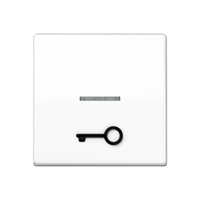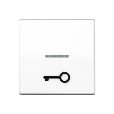 Schakelwip (knop) met opgelegd sleutelsymbool en controlevenster, geschikt voor controleschakelaars, en schakelaars/pulsdrukkers met verlichting. Gemaakt van slagvast, hoogglanzend thermoplast. Exclusief binnenwerk en afdekraam. Serie: AS 500, kleur: alpine wit.