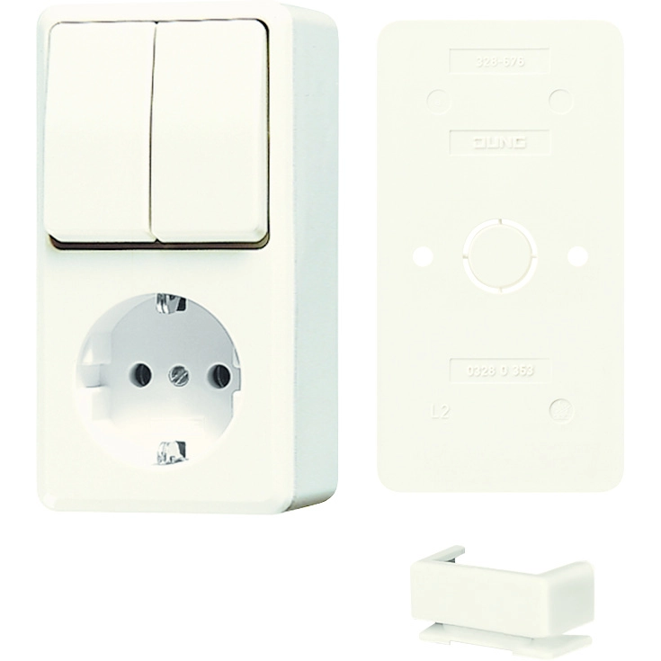 JUNG opbouw combinatie serieschakelaar/wandcontactdoos randaarde incl. bodemplaat AP600 creme (B 675 A)
