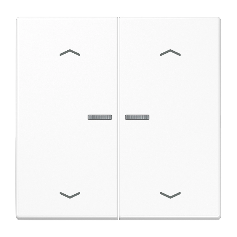 HOME dimmerknop 2-voudig met pijlsymbolen geschikt voor het handmatig of automatisch bedienen van bijvoorbeeld jaloezieën, rolluiken, markiezen, verlichting of ventilatoren. Afhankelijk van het gebruikte basiselement (separaat aan te schaffen). Draadloze verbinding met componenten van het Jung HOME-systeem. Inbedrijfname en bediening via Jung HOME-app op mobiele apparaten (smartphone of tablet) met Bluetooth.