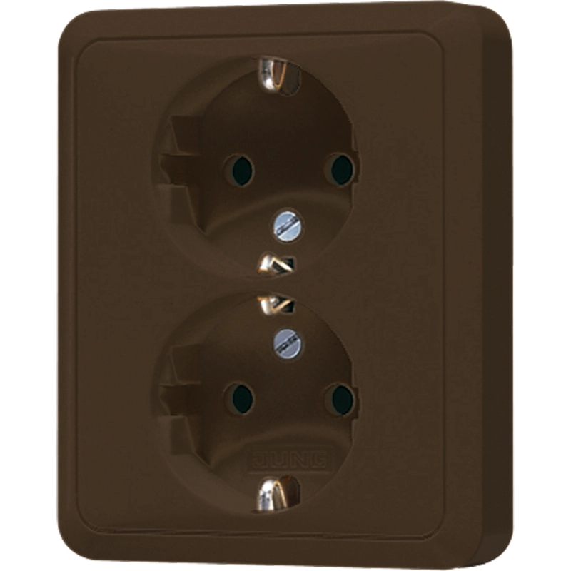 JUNG wandcontactdoos 2-voudig randaarde Safety+ voor enkele inbouwdoos CD500 bruin (CD 5020 NKI BR)