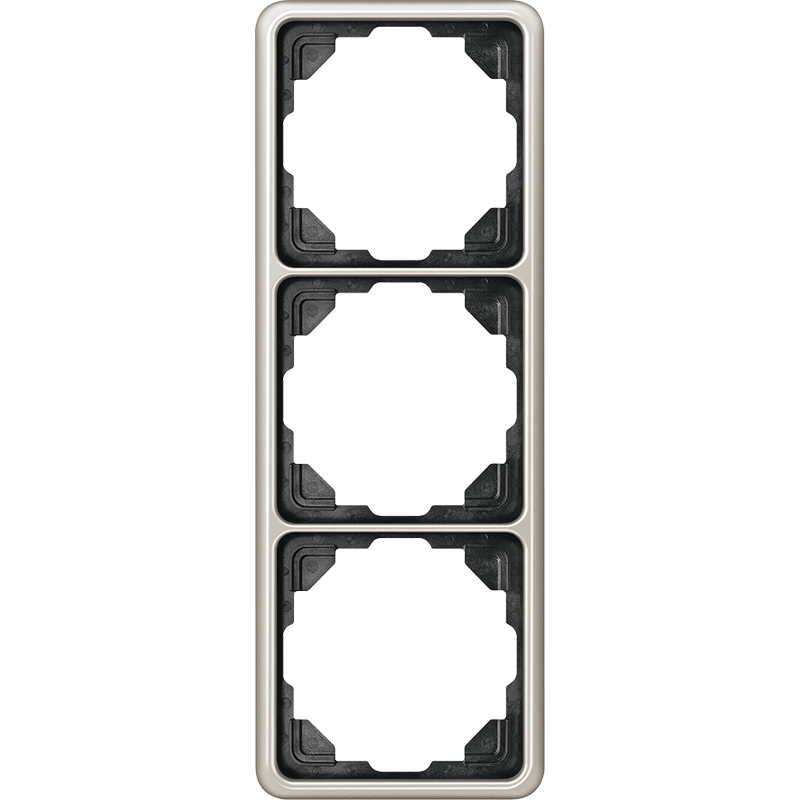 Drievoudig afdekraam, voor horizontale en verticale montage. Afmetingen: 81 x 223 x 10 mm. Metaaluitvoering (geanodiseerd aluminium). Serie: CD 500, kleur: platina.