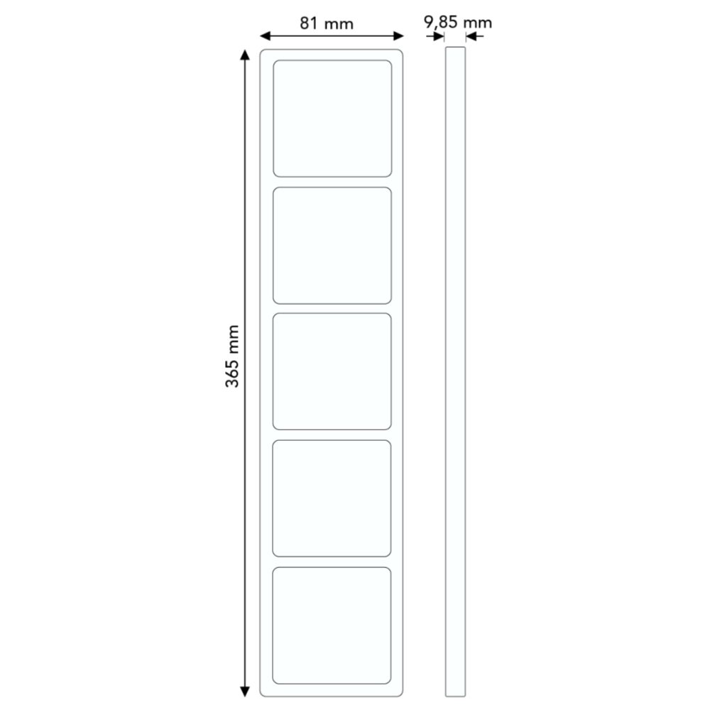 JUNG CD500 platina geanodiseerd aluminium 5-voudig afdekraam, afm. 81,0 x 365 x 10 mm. Zowel horizontaal als verticaal te monteren. Metaaluitvoering. Meer informatie »
