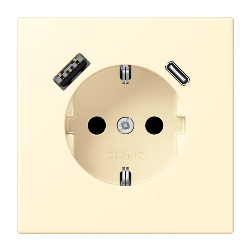 JUNG wandcontactdoos randaarde Safety+ met USB type A en C Les Couleurs blanc 201 (LC 1520-15 CA 201)