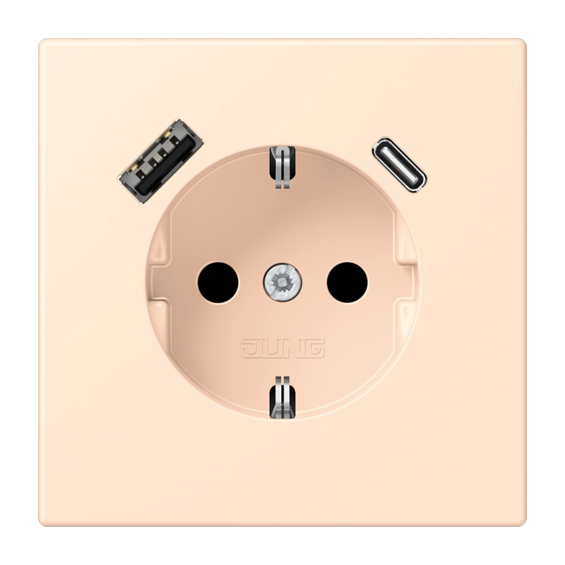 JUNG wandcontactdoos randaarde Safety+ met USB type A en C Les Couleurs terre sienne pale 238 (LC 1520-15 CA 238)