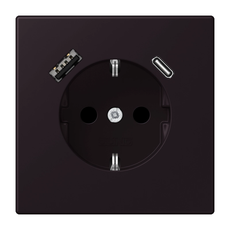 JUNG wandcontactdoos randaarde Safety+ met USB type A en C Les Couleurs noir d'ivoire 248 (LC 1520-15 CA 248)