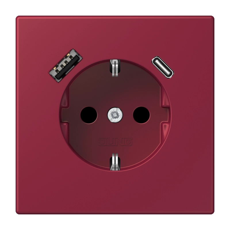 JUNG wandcontactdoos randaarde Safety+ met USB type A en C Les Couleurs le rubis 255 (LC 1520-15 CA 255)