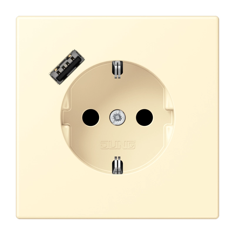 JUNG wandcontactdoos randaarde Safety+ met USB-A Les Couleurs blanc 201 (LC 1520-18 A 201)