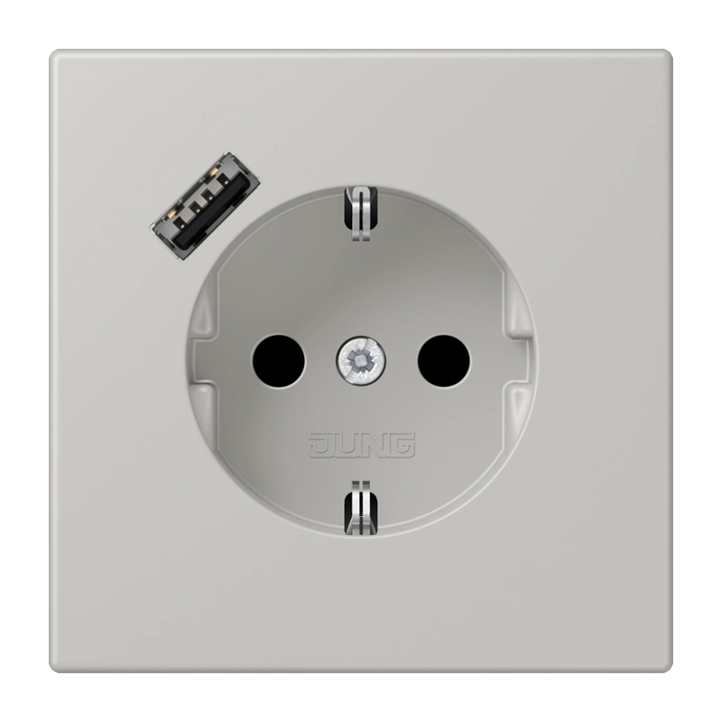 JUNG wandcontactdoos randaarde Safety+ met USB-A Les Couleurs gris clair 31 205 (LC 1520-18 A 205)