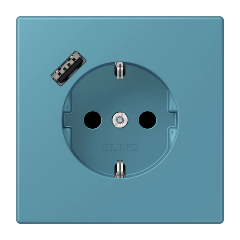 JUNG wandcontactdoos randaarde Safety+ met USB-A Les Couleurs ceruleen vif 212 (LC 1520-18 A 212)