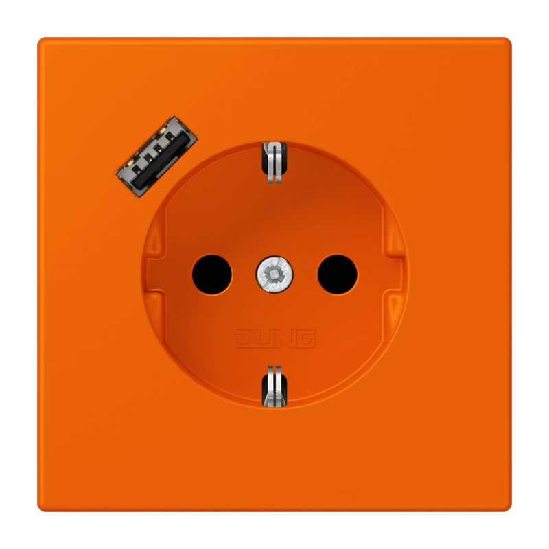 JUNG wandcontactdoos randaarde Safety+ met USB-A Les Couleurs orange 224 (LC 1520-18 A 224)