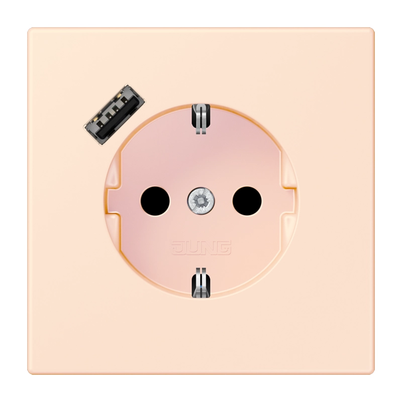 JUNG wandcontactdoos randaarde Safety+ met USB-A Les Couleurs orange pale 226 (LC 1520-18 A 226)